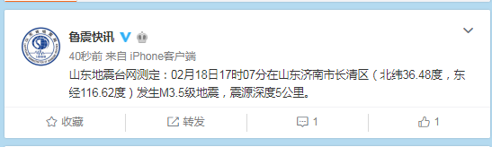山東發(fā)生地震!齊河有震感!