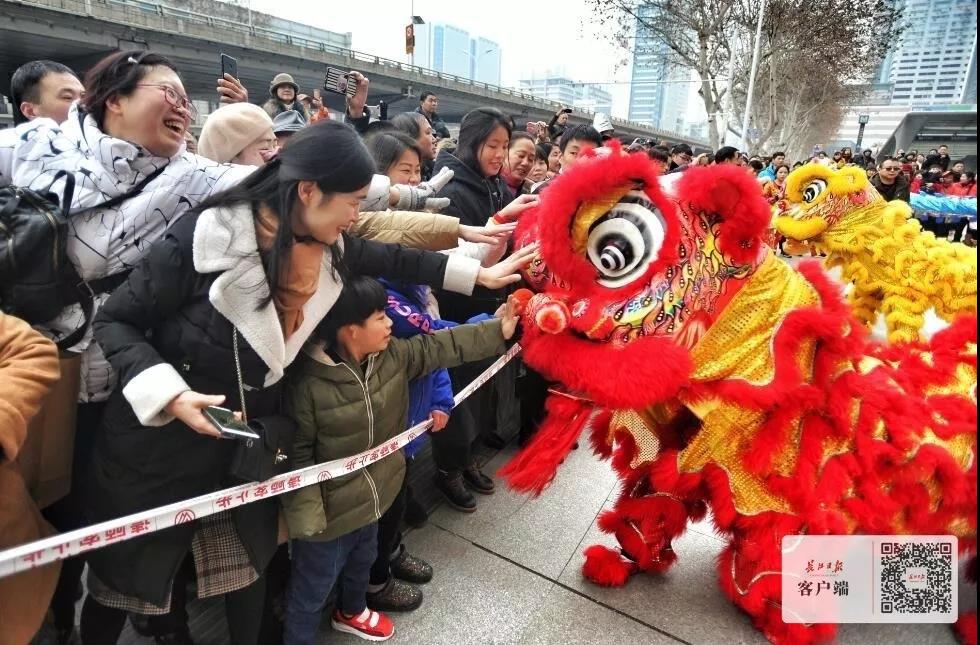 2019年元宵,武漢市民爭相摸“獅子頭”求新年好運
