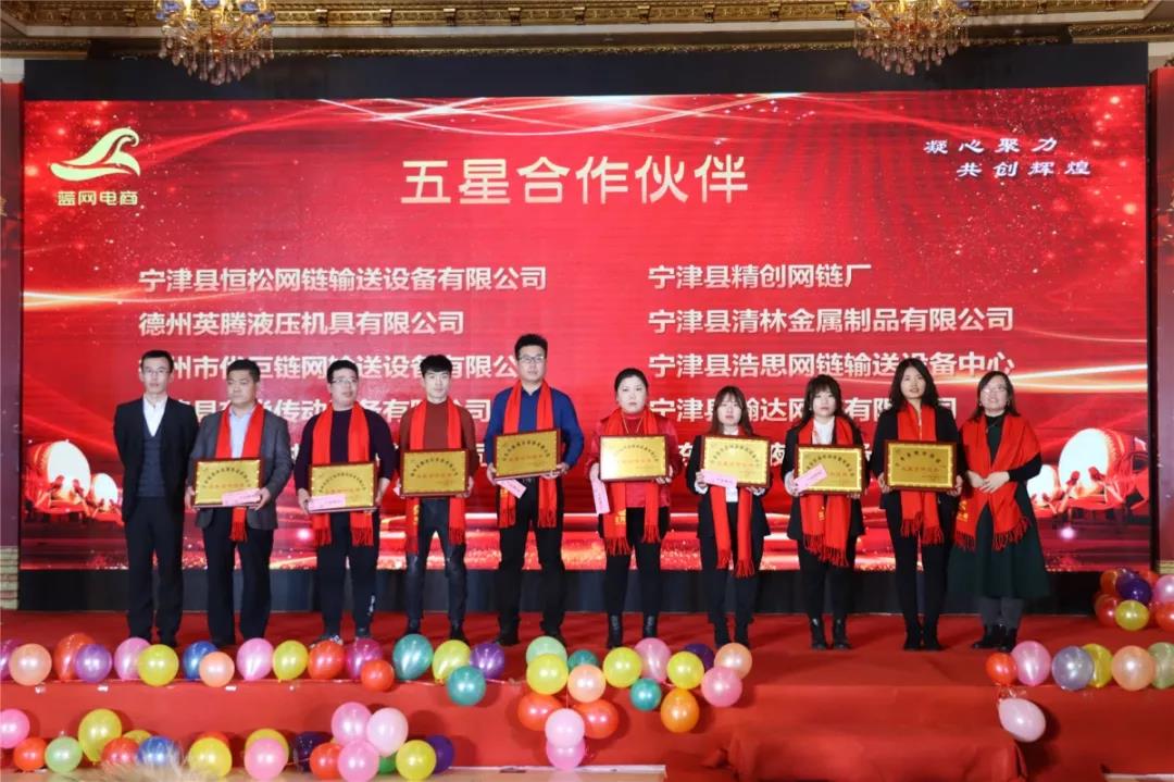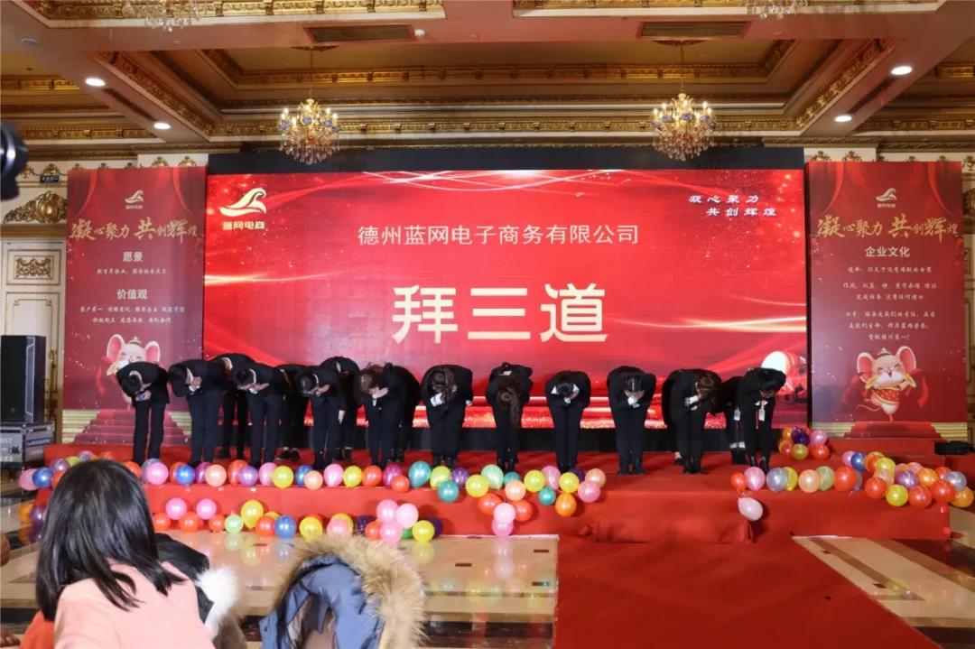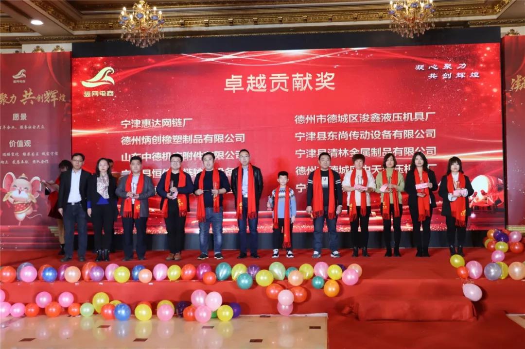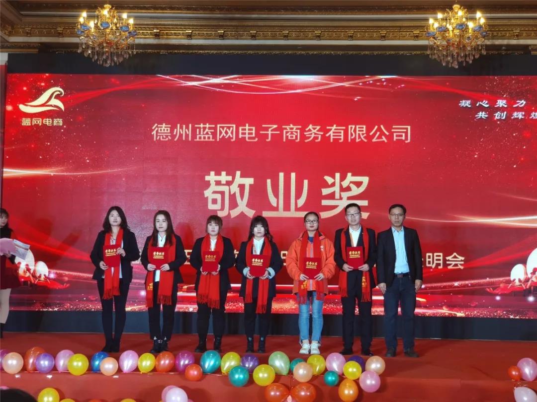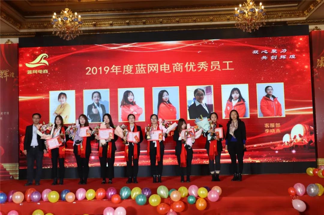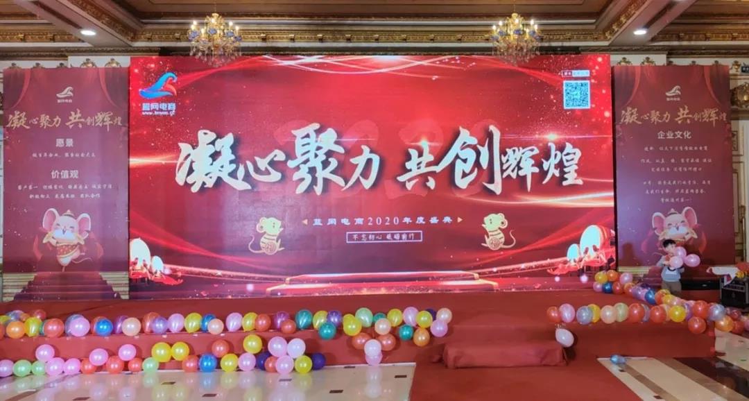 2020年1月18日,藍(lán)網(wǎng)電商在澳德樂大酒店以“凝心聚力 共創(chuàng)輝煌藍(lán)網(wǎng)電商2020年大型年會暨頒獎盛典”為年會主題隆重召開,來自各行各業(yè)的優(yōu)秀商家,合作伙伴以及藍(lán)網(wǎng)電商全體家人近300人參加本次宴會。