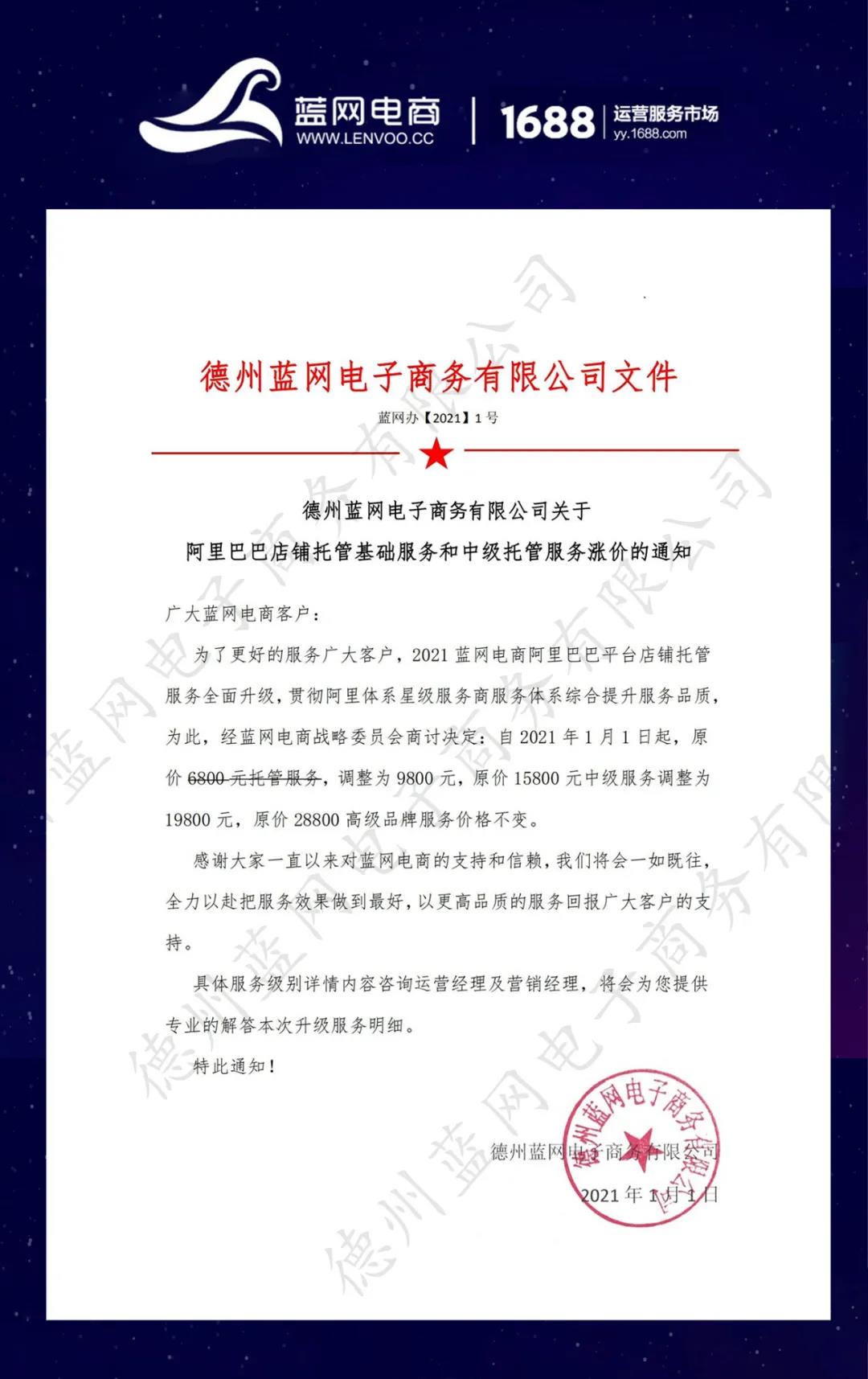 調價通知 | 2021藍網電商阿里托管服務全面升級!
