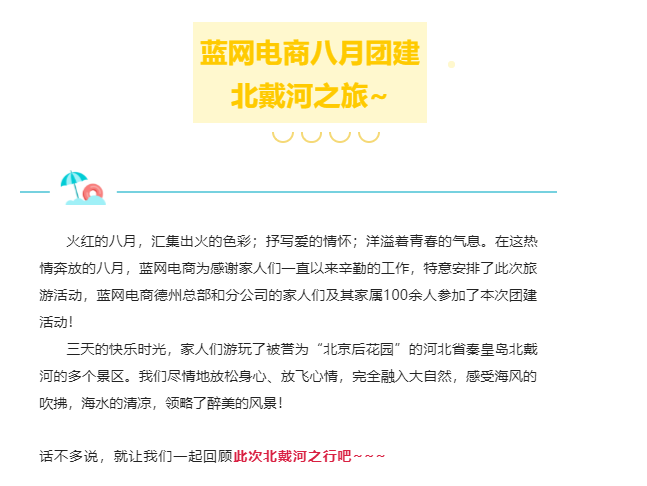 “醉美北戴河,歡樂藍(lán)網(wǎng)行”藍(lán)網(wǎng)電商2022年八月團(tuán)建完美收官!