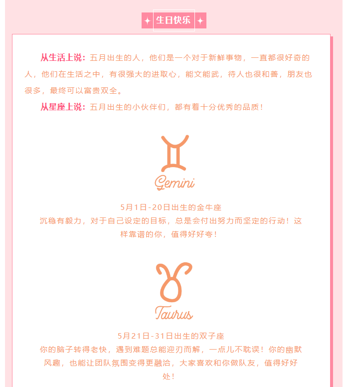 【五月壽星】特別的日子,真誠的祝福,祝五月壽星生日快樂!